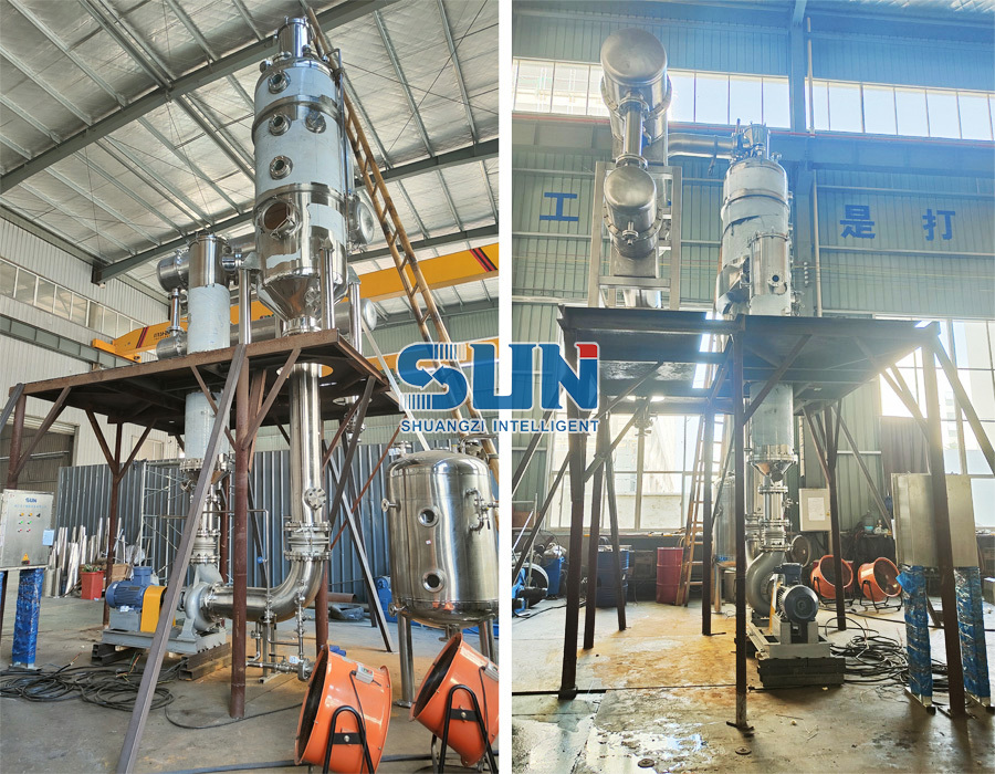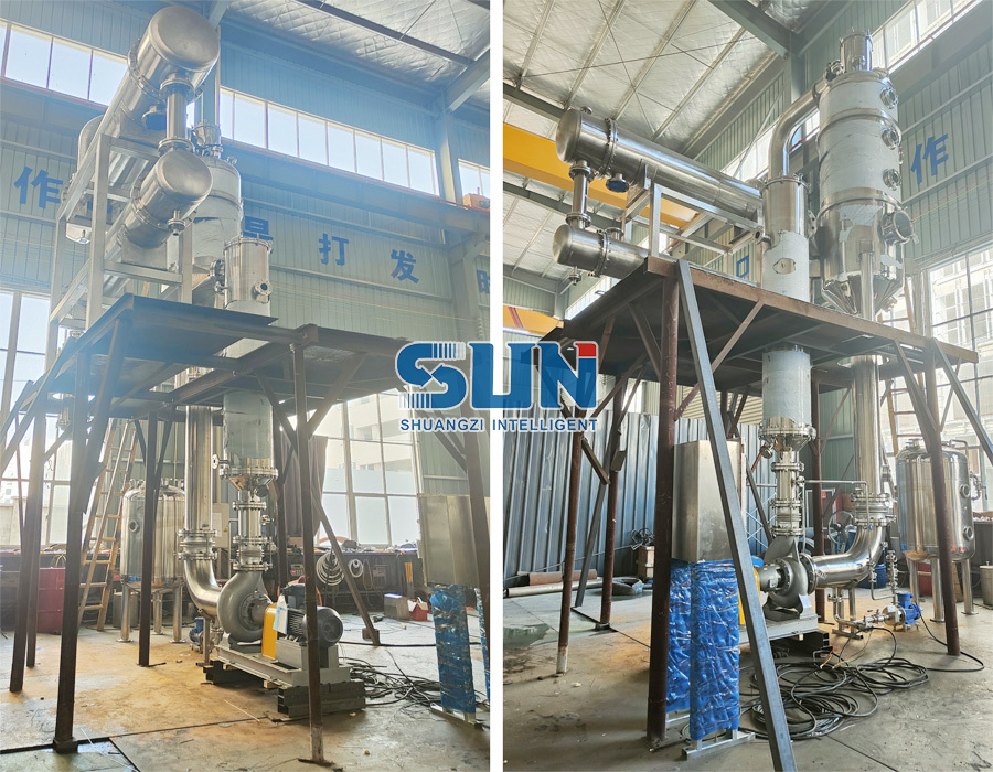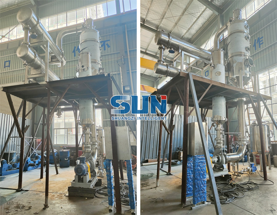 Evaporatorul de circulație forțat cu efect unic este un dispozitiv de evaporare utilizat frecvent pentru concentrația de materiale lichide. Caracteristica sa principală constă în combinația de „evaporare cu un singur efect” și „circulație forțată”. Este aplicat pe scară largă în industrii precum alimente, medicamente și inginerie chimică și este deosebit de potrivit pentru procesarea materialelor vâscoase, ușor de cristalizabile și care conțin particule (cum ar fi extractele tradiționale de medicamente chinezești, sucul de fructe, produse lactate, soluții chimice etc.).